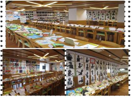 2学期末の個人懇談会の期間に文化祭展示の部を各学年やステージのフロアで開催しています。学園生が各教科の授業や「光と風学習」(生活・総合的な時間の学習)、部活動、コリアみんぞく教室などで取り組んだ作品を展示し、懇談会に来校された保護者の皆さまに見ていただいいます。