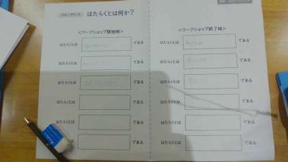 本日、7年生は「光と風」学習の一環として、パーソルキャリア株式会社から4名の講師の方々に来ていただき、ワークショップをしたりや講和を聴いたりして、「はたらく」ことについて考えました。