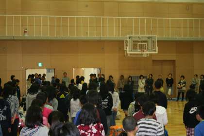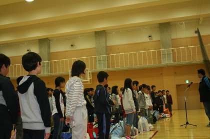 ほぼ予定通りの時刻に6年生が帰ってきました。みんな充実した2日間を過ごせたようで,学園に着くとホッとしたような表情でした。そして小体育館に入り,解散式です。解散式は,みんなしっかりとした態度で臨めていました。