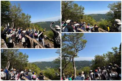 昼食後は「ヤッホーポイント」へ移動。なんと、山の頂上付近から花背山の家で活動している仲間や先生、所員の方と、お互いに「ヤッホー??」と叫んで、交流することができました。