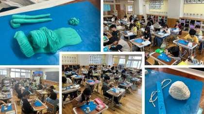 図画工作科では、「ねん土の板を立ち上げて」に取り組みました。様々な道具を用いて、作品を作ることができました。