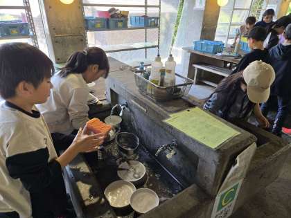 次の学校の人が気持ちよく使えるように、丁寧に片付けています。