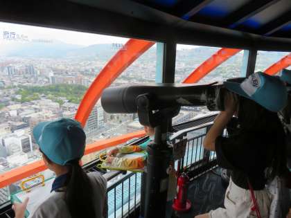 展望室につくと、「山が見える」「大仏のようなものがあるよ」と、見つけたものを友だちと伝えあっている姿や、ワークシートに文字いっぱい書き込んでいる姿が見られました。