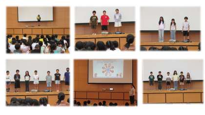 今月の「なかよしの日」朝会では、各きっずチームからハッピースクール大作戦の取組についてのお知らせがありました。