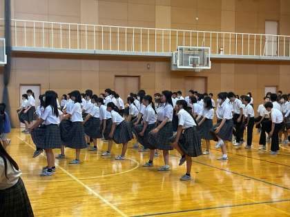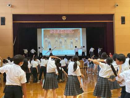 体育委員会は、運動会のために考えた準備体操の練習会を開催しました。事前に動画で体操を見て、練習会の当日は体育委員の動きを見ながら元気いっぱい体操をしました。