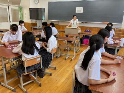 8年生では、高校の先生をお招きして高校の授業を体験する「出前授業」を実施しました。