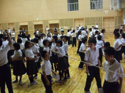 答える5,6年生は,正解と思う番号のエリアへ全力疾走!