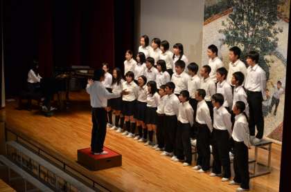 8年生から合唱コンクールになります。各クラスとも最優秀賞を目指し,一生懸命練習をしてきました。2組「時の旅人」,1組「時を越えて」,3組「心の瞳」の順番で発表です。