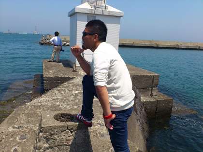農業・農村体験の様子。港で先生のお出迎えです。