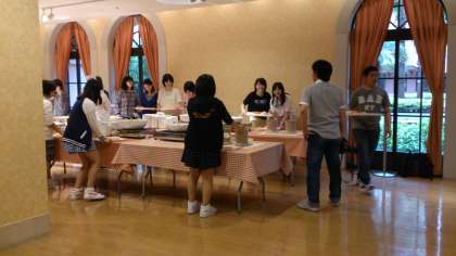 お部屋のメンバーとバイキング形式の朝食をとりました。