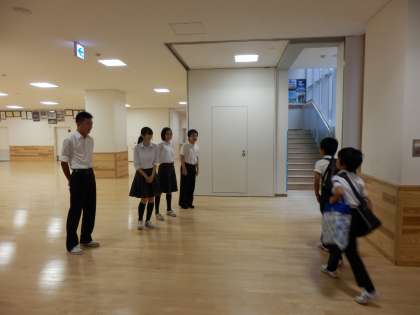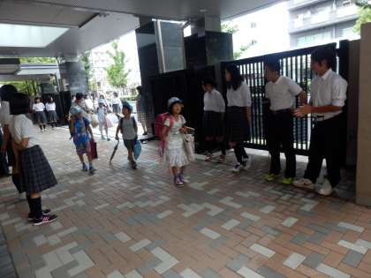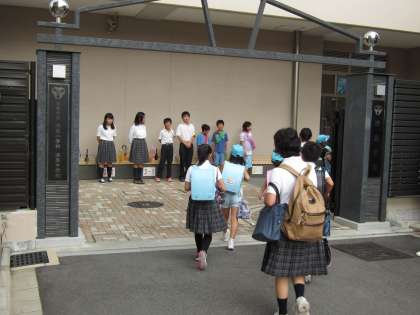 本日からは,第1ステージのきっずチームの学園生も参加し,1〜9年生が一丸となって,あいさつあふれる凌風学園を目指して取り組んでいます。