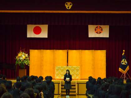 8年生代表からの送辞では,9年生にお世話になった思い出と,卒業される9年生は,永遠のあこがれなので,大きく羽ばたいてほしいというメッセージが送られました。また,9年生代表の答辞では,小中一貫校での不安や戸惑いの中,新たな伝統を作ろうと努力した。9年生を送る会では絆の集大成を見た,後輩達にこの凌風の伝統を託すので,活躍を期待している。と力強く述べられていました。また,家族への感謝の気持ちや,凌風での出会いが,かけがえのない時間であったとまとめていました。