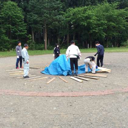 空は曇り空ですが,雨も降らず過ごしやすい気候です。今のところ予定通りキャンプファイヤーを行えそうなので,レクリエーション係のメンバーでリハーサルや打ち合わせをしました。みんな,盛り上がる気満々です。