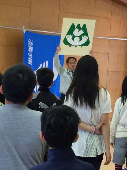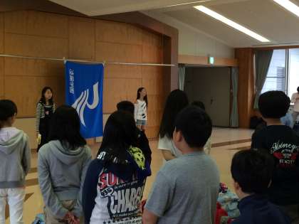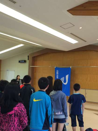 いよいよ退所式です。所員さんからは、たくさんの人たちの支えによって, この研修旅行は成り立っているという話をしていただきました。また,昨晩のキャンプファイヤーの「火の神」の話題もあり,みんな驚いていました。小雨模様の中,みんな元気にこの奥越高原青少年自然の家を後にします。