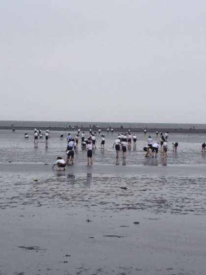 海浜公園に到着し,潮干狩りを始めています。