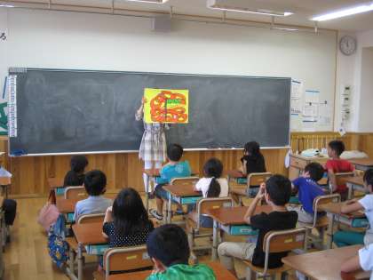 栄養教諭の芹口先生に『食』について教えてもらいました。今回は食べ物のゆくえを学びました。小腸はとっても長く,そこで栄養を吸収していることが分かりました。次回もどんな学習をするのか楽しみです。