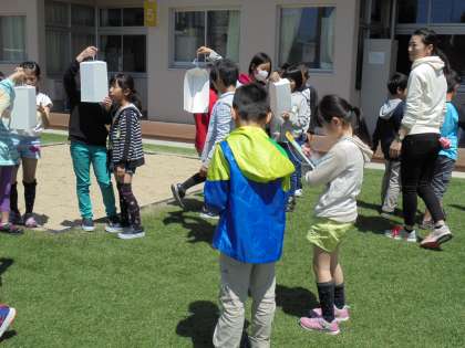 理科の学習で温度計を使って,気温の測り方の学習をしました。日光が直接,温度計に当たらないように紙で周りをおおってメモリを読みます。この学習を通して,次は晴れの日と雨の日の気温の変化をみていきます。どんな変化がみられるのでしょうか。