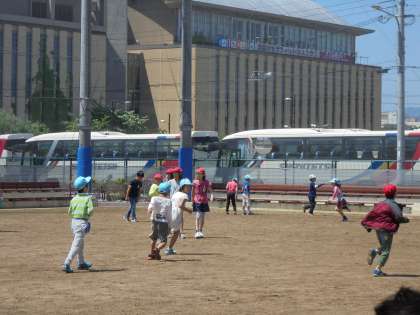 久しぶりのよいお天気です。休み時間に運動場やプレイゾーンに出て,元気いっぱい遊んでいる学園生です。1年生は,すっかり学園生活にも慣れ,遊具に登ったり,ぶら下がったりして楽しんでいます。日の光をいっぱいに浴びて,心も体もすくすくと育ってほいいです。