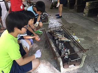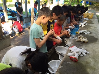 冷たい池の中のイワナをつかみ,自分でさばき,炭火で焼き,いただきました。「魚つかみ」を通して,命の大切さや有り難さを感じることができました。初めて自分でさばいたイワナは,今までに味わったことのないような美味しさがあったようです!