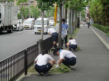 今週,8年生は「生き方探究チャレンジ体験」で地域の各事業所に出向いて頑張っていますが,事業所に休業日がある学園生は,登校して学園内や周辺の奉仕活動をしています。九条通の街路樹下の雑草引きや学園の象徴である「光と風の庭」の清掃など,ここ数日でそれらの場所が見違えるほど美しくなりました。そんな8年生だから,事業所でも精一杯活動している姿が目に浮かびます。チャレンジ体験もいよいよ明日が最終日!貴重な経験とともに,大きく成長して学園に戻ってくる姿を期待しています!