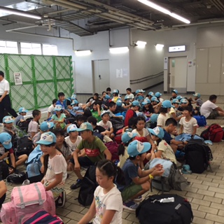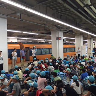 学園を出発して,近鉄京都駅に着きました。とても暑く,着くまでに汗だくになりました。少し休憩して,これから近鉄電車にのります。