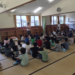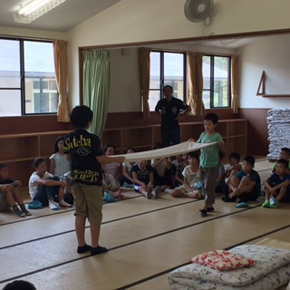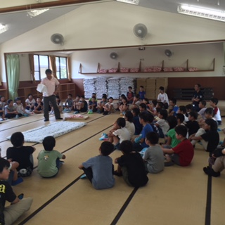 入所式を終えて,みさきの家での過ごし方のきまり,布団やシーツなどのたたみ方を所員さんから教えてもらいました。これから3日間,班で協力して頑張ることを確認しました。