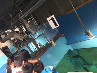 野外宿泊学習最後の活動の志摩マリンランド見学を行いました。ペンギンタッチや餌やり体験をし,水族館を見学しました。初めての体験をしたり,珍しい海の生き物を見たりして,とても驚いていました。この後,昼食を食べていよいよ学園に帰校です。