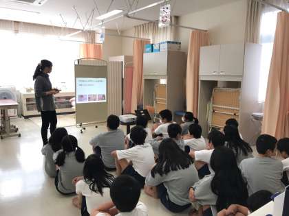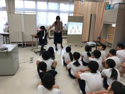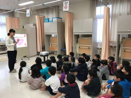 計測の前に各学年それぞれのテーマで,健康に関する話を聞きました。