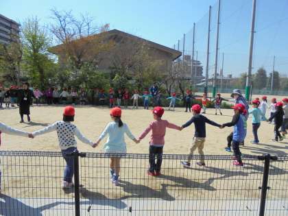 凌風学園の東側にある東和校地へいきました。いいお天気の下で,春をみつけたり,お友だちと手をつないで輪になって交流をしたりしました。一人ひとり,とってもいい笑顔でお勉強しています。