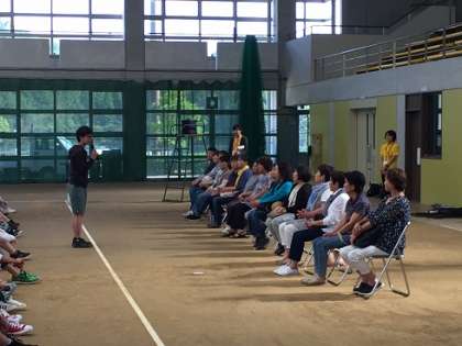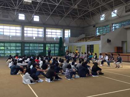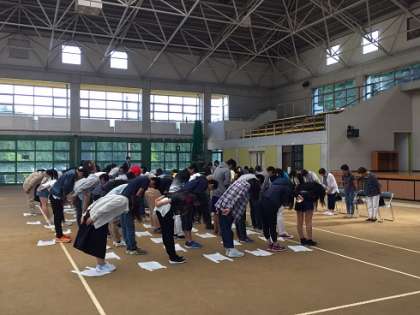 お別れ式が始まりました。安心院の自然、家庭のあたたかさ、非日常の体験から、学園生も朗らかな表情をしています。代表の方からご挨拶をいただき,学園生代表からお礼の言葉を述べました。