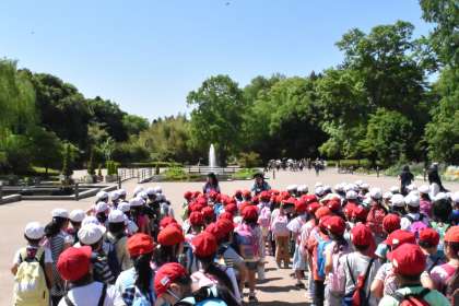 5月19日(金)に,1,2年生合同の校外学習で,府立植物園へ行きました。暑いくらいのいい天気で,バラがきれいに咲いていました。