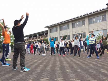 朝の集いでは,代表から「みんなで頑張ってきれいな景色を見たい」というあいさつがありました。体操をするときには,大自然のおいしい空気を体いっぱい吸いこみました。