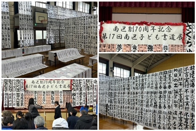 1月24日(土)、25日(日)に唐橋小学校体育館において第17回南区子ども書道展が行われました。南区の小、中学校から3469点が出品され、展示されました。