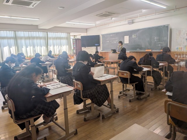 今年一年間の総括的な学びの力を発揮する場です。どの学園生もこれまでの定期テスト以上に緊張感をもって臨んでいる様子でした。学年末の最後の締めくくりのテストとして、自分の目標の達成や、前回までの自分を越えるべく、どの教科も最後までしっかり頑張ってください。