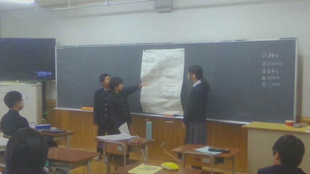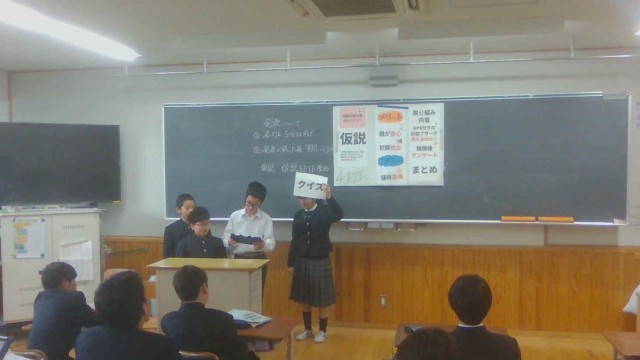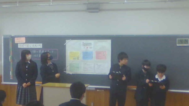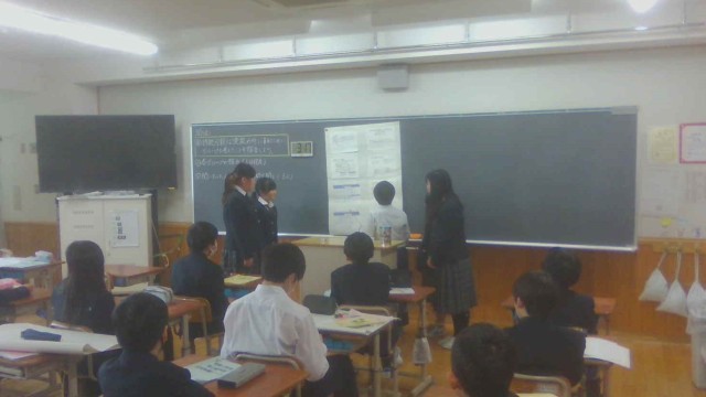 先日、凌風の町を持続可能な町にするためにできることについて、提案する内容を考えている場面を参観していただきましたが、今日はグループごとにまとめた提案を発表しました。それぞれのグループで動画を取り入れたり、クイズを交えたりと工夫を凝らして発表しました。発表後にはお互いに感想を伝え合い、学習の振り返りをしました。