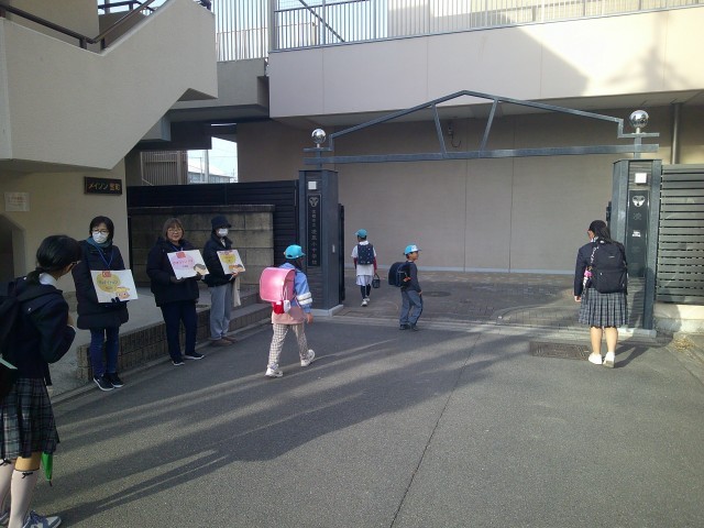 今年度最後のPTA本部役員、見守り委員、学校支援ボランティアのみなさんによる「朝のあいさつ・付き添い運動」を行いました。年度末の忙しい時期ではありますが、みなさんのあいさつと見守りで、子どもたちは元気に学校生活をスタートできます。本当に感謝です。今年度、「朝のあいさつ・付き添い運動」でお世話になった皆様、ありがとうございました。これからも、学園生の登下校の安全にご協力いただきますようよろしくお願いいたします。