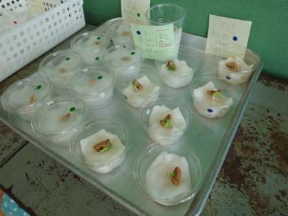 理科の学習で育てている教室のインゲンマメが発芽しました。子どもたちも発芽の様子を喜んでいました。