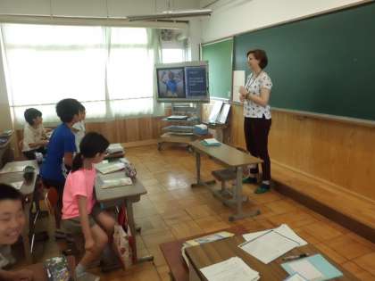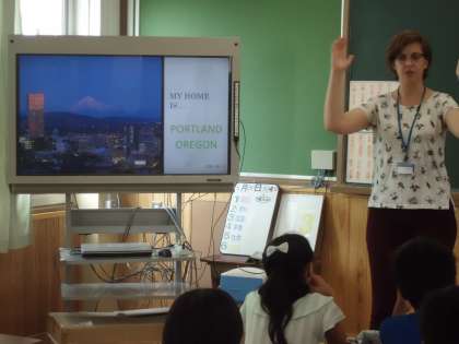 5月30日(火)にALTのロス・キャサリンが外国語活動の授業をしました。まずは,はじめましてということで自己紹介からスタート。キャサリン先生の身長や好きな食べ物,出身の国などについて,クイズを交えて楽しく知ることができました。その後の質問タイムでも,積極的に手を挙げてたくさんのことを聞き出そうとする子どもたち。次のキャサリン先生の授業が今から待ち遠しいようです。