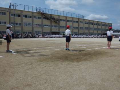 6月3日(土)の運動会は天候に恵まれた中,開催することができました。5年生最初の競技「100m走」は,得点の入る最初の競技ということもあり,緊張感あふれる中での実施となりました。それでも,「駆け足でスタートラインに立つ」「用意の声で体を固定する」といった練習での成果を見事に発揮することができました。