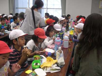 みんなすぐに食べ終わり,遊びに行きたい気持ちでいっぱいでした。