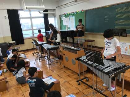 音楽科の学習で,「星空はいつも」の合奏,合唱に取り組んでいます。歌とリコーダー,鉄琴とチャイムを合わせて,星空の静かな様子,流れ星が流れる様子を表します。この日の学習では,3つのグループに分かれて,それぞれ練習を行いました。次の時間で,グループごとに発表をします。