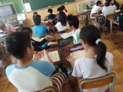 外国語活動では,ハローソングに挑戦。リズムに乗って,あいさつのフレーズを楽しく歌うことができました。