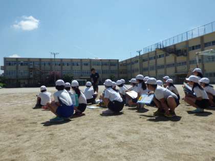運動場では,スポーツテストのソフトボール投げをしました。青空のもと,空高く舞う白球が印象的でした。