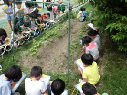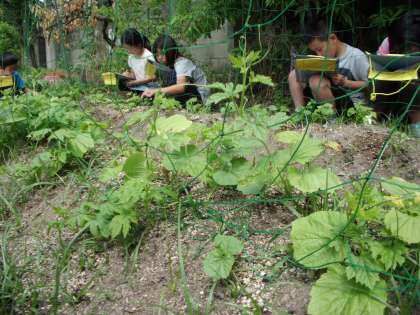 理科の学習で,春に植えたツルレイシの観察を行いました。