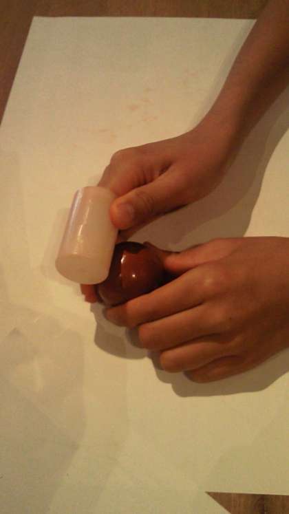 しっかり磨くと,陶器のような硬くつやのあるボールができあがります。