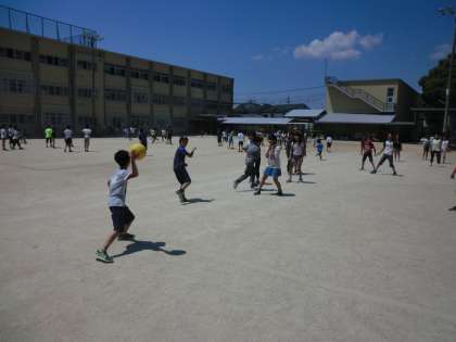 今日はみんなあそびでドッチボールをして
