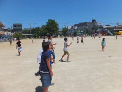 毎週水曜日,遊び係の子どもたちが,みんな遊びの企画・運営をしてくれています。この日は腫れたので,外でドッジボールをしました。運動が得意な子も,そうでない子も,楽しく遊べるようにお互いに声を掛け合って楽しく遊ぶことができました。