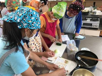 家庭科の学習で,調理実習を行いました。6年生では,炒める料理について学習をします。事前に班でどのように作っていくかを分担し,計画的に進めていきました。食材を切る手つきも,5年生より上達している子が多かったです。