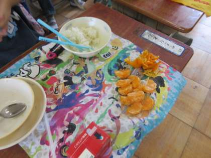 水遊びを終えた暑い金曜日の給食時間,ちょっと疲れた体に冷たいみかんが美味しい一時でした。