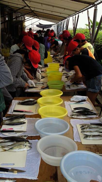 慣れない手つきですが、みんな頑張ってさばいています。